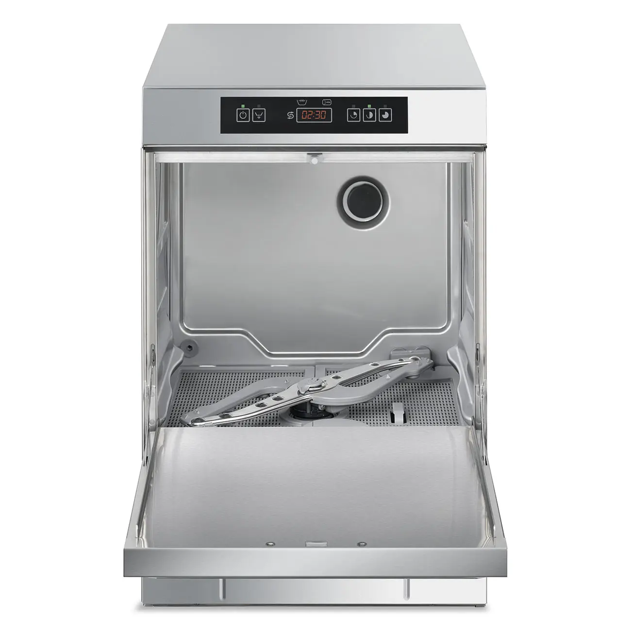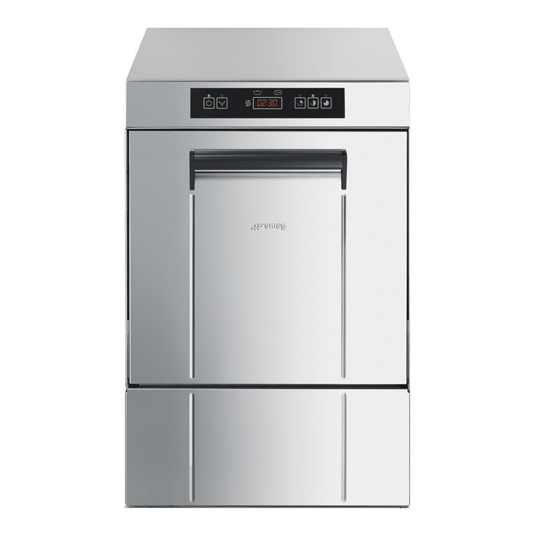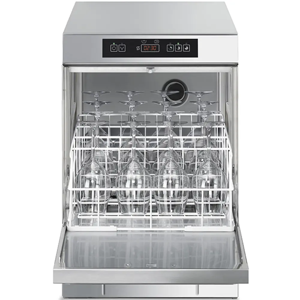 Lavabicchieri Smeg Ecoline con carrozzeria in acciaio inox. Vasca con baseย stampata in acciaio inox AISI 304 . Porta a doppia parete e comandi digitali.