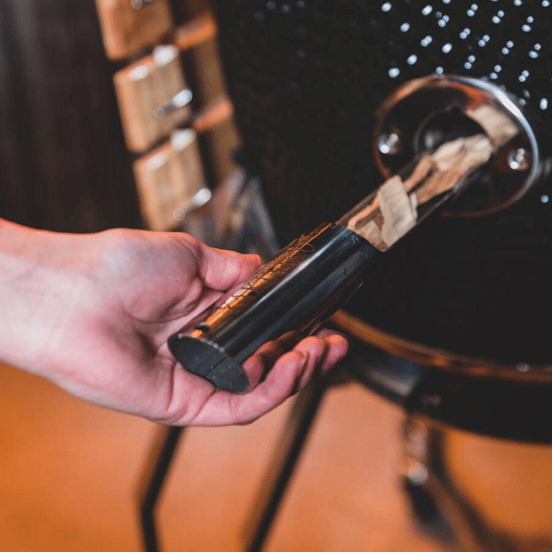 Il Woodchipper YAKINIKU® è l’accessorio indispensabile per chi desidera affumicare in modo preciso e professionale. Grazie al suo design intelligente, permette di aggiungere legna da affumicatura all’interno del Kamado senza sollevare il coperchio, evitando la dispersione di calore e mantenendo una temperatura costante durante tutta la cottura.